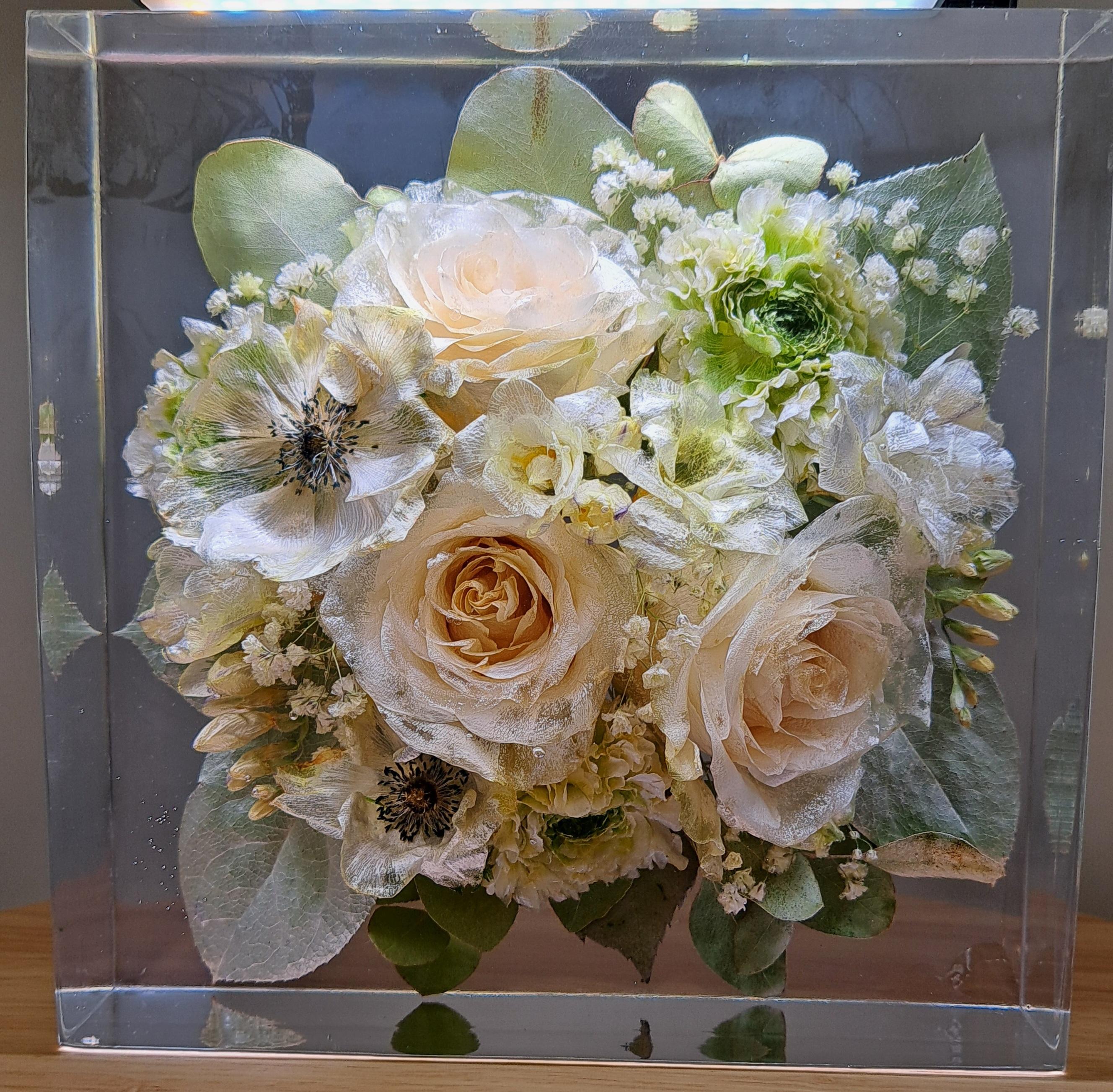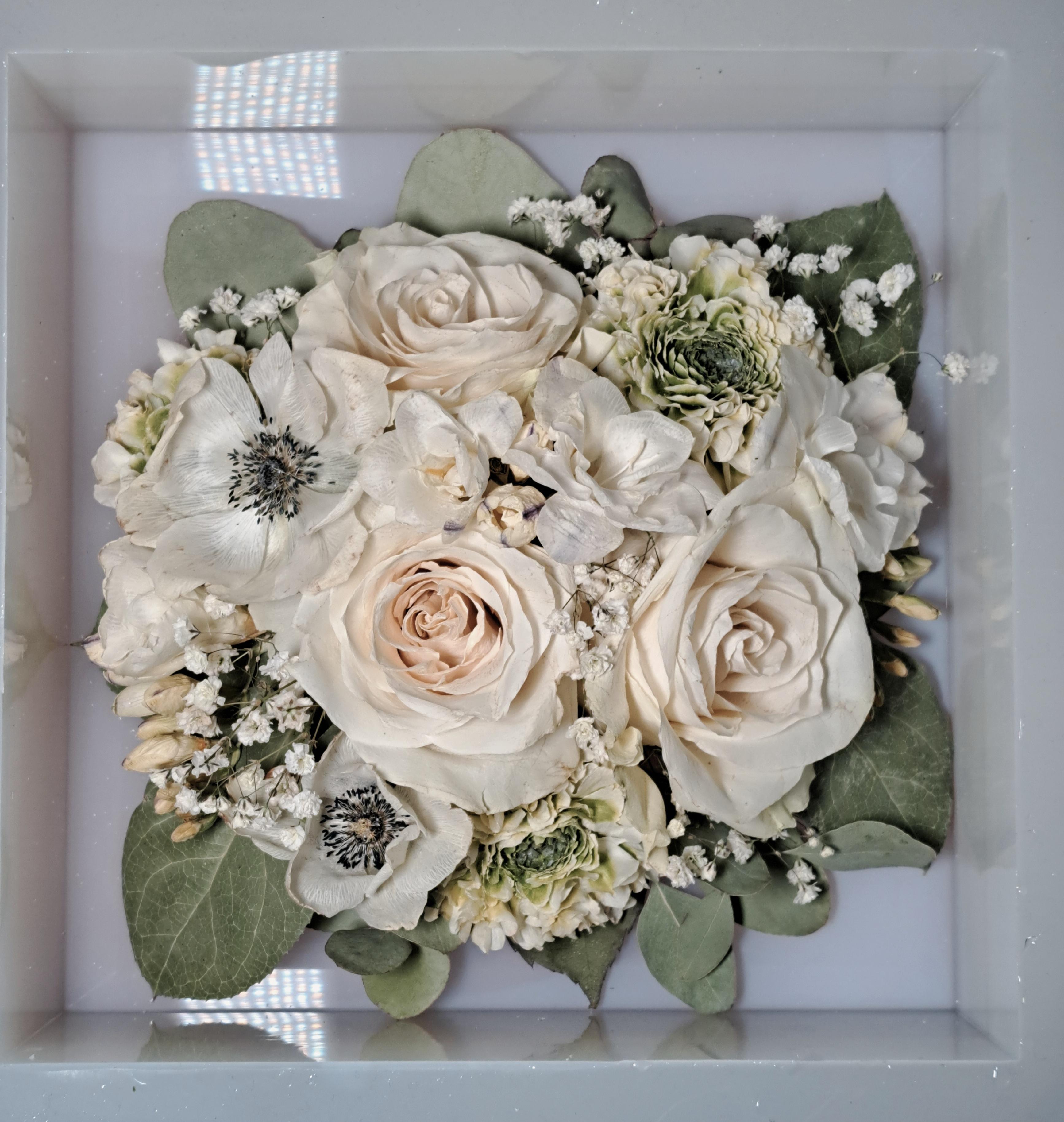 Sobald die Blumen bei uns angekommen sind, trocknen wir sie in einem speziellen Trockengranulat für dich. Anschließend bekommst du einen Designvorschlag in der bestellen Form. An diesem Vorschlag kannst du gerne noch Änderungen vornehmen lassen. Nach deiner Freigabe konservieren wir die Blumen in liebevoller Handarbeit – professionell, detailgetreu und mit viel Sorgfalt in Epoxidharz.