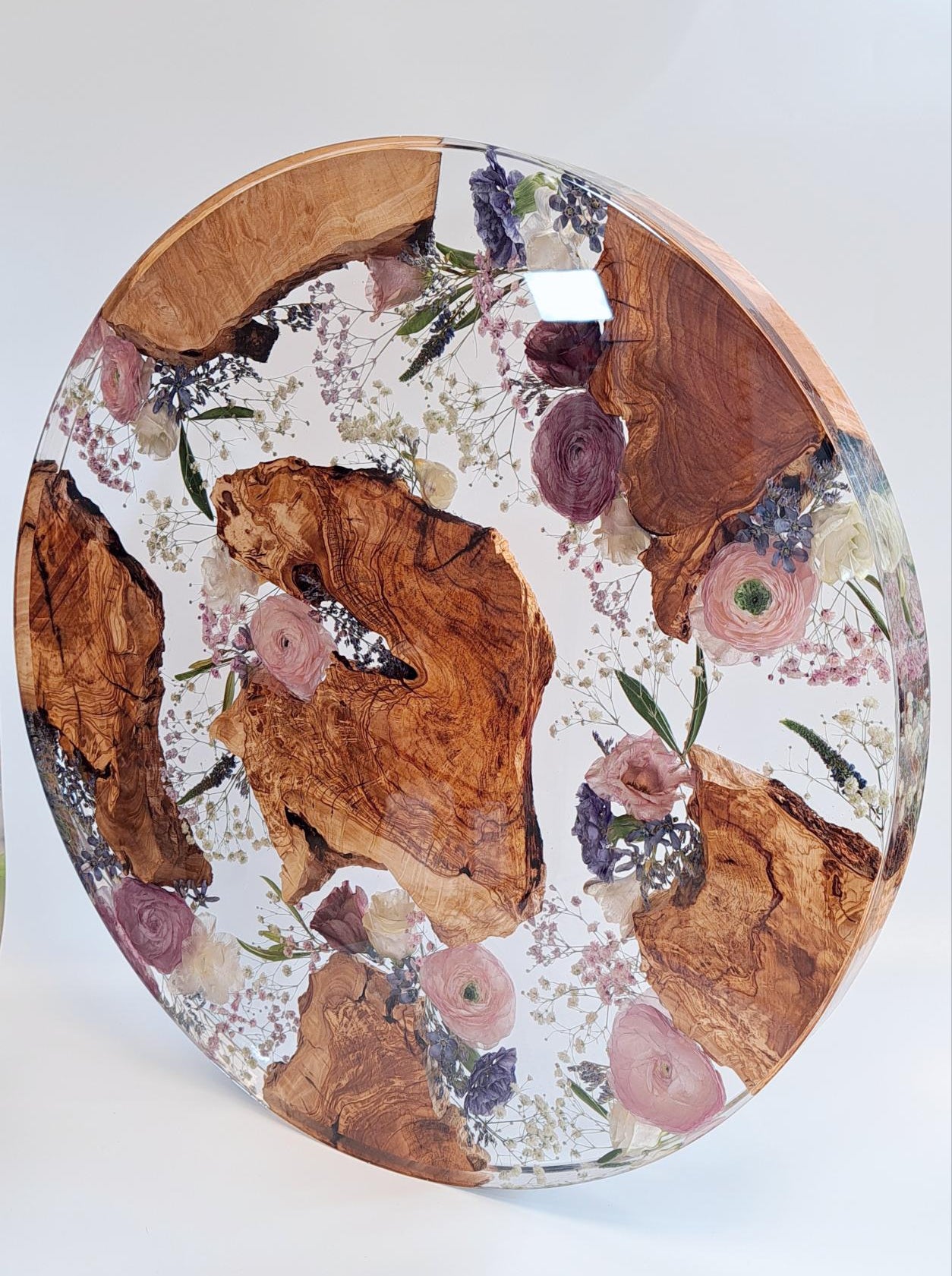 Auf Wunsch können die Blumen mit Olivenholz kombiniert werden.